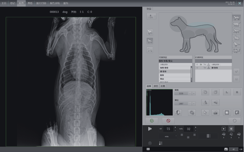 1、寵物DR成像速度快,采集時間10ms以下,成像時間僅為3秒,放射診斷醫師即刻在屏幕上觀察圖像。數秒即可傳送至后處理工作站,進行閱片發診斷報告,常規胸部DR照片從檢查到出診斷報告大約5—10分鐘。